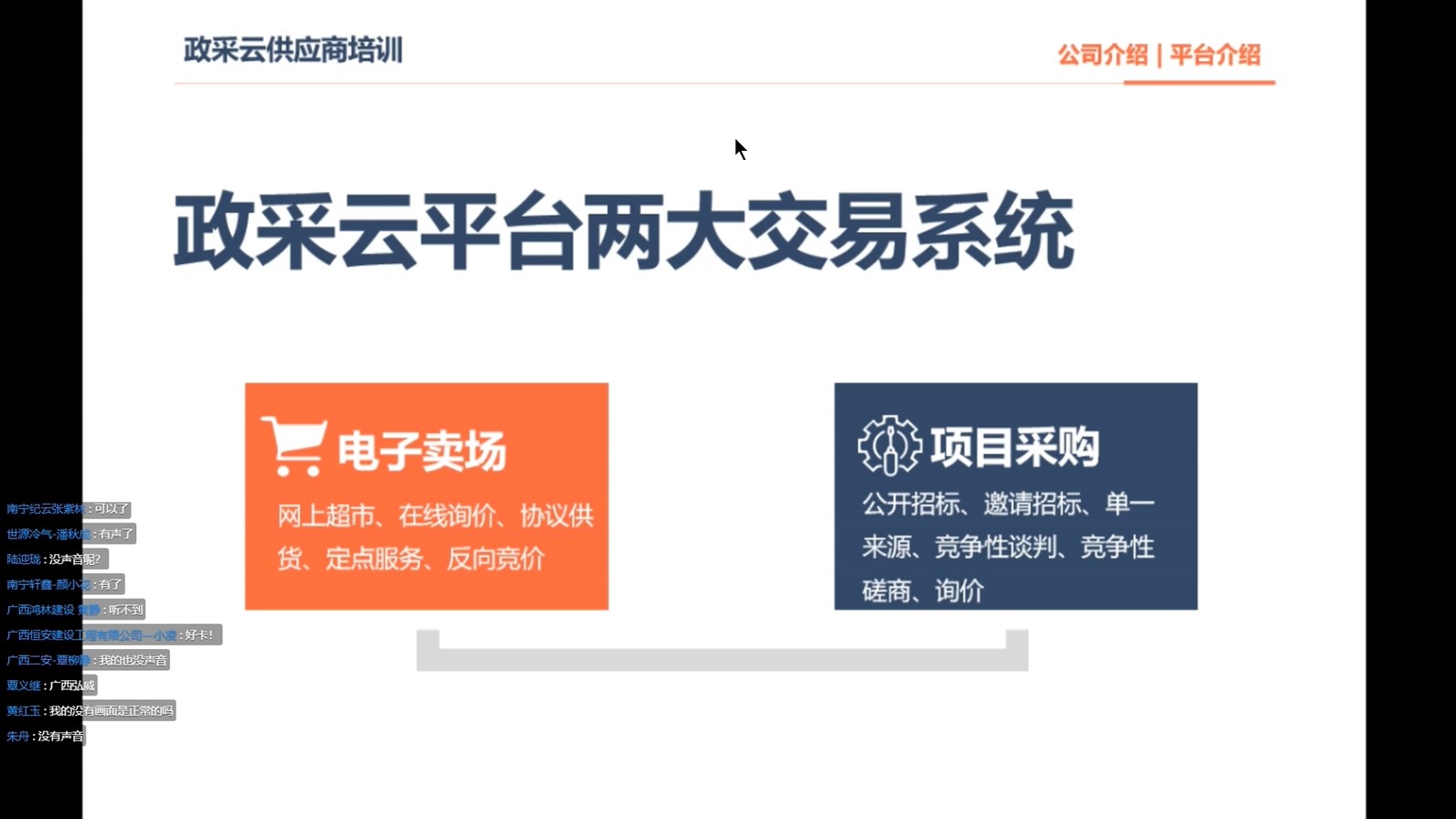 2019年3月20—21日,广西财政厅政府采购监管理部门大胆创新,打破传统的集中授课培训方式,充分利用互联网优越性,首次通过“钉钉”群在线直播方式,对自治区本级政府采购电子卖场定点供应商和政府采购代理机构实施了两场培训。