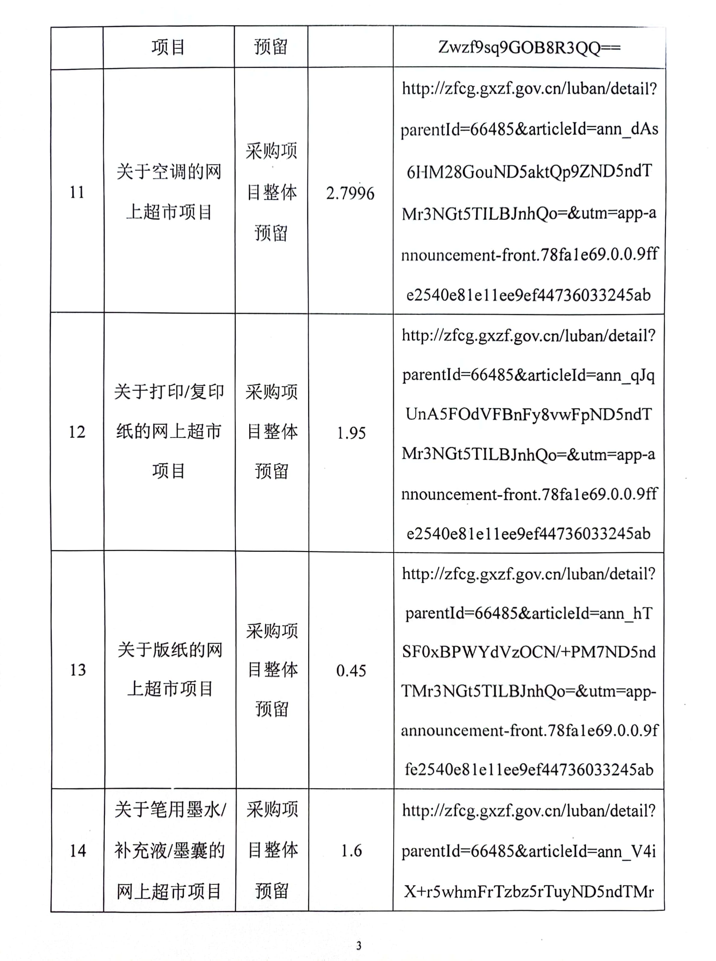 | 3 | 关于版纸的网上超市项目 | 采购项目整体预留(预留中小企业的比例:100.00%) | 0.45 | - |