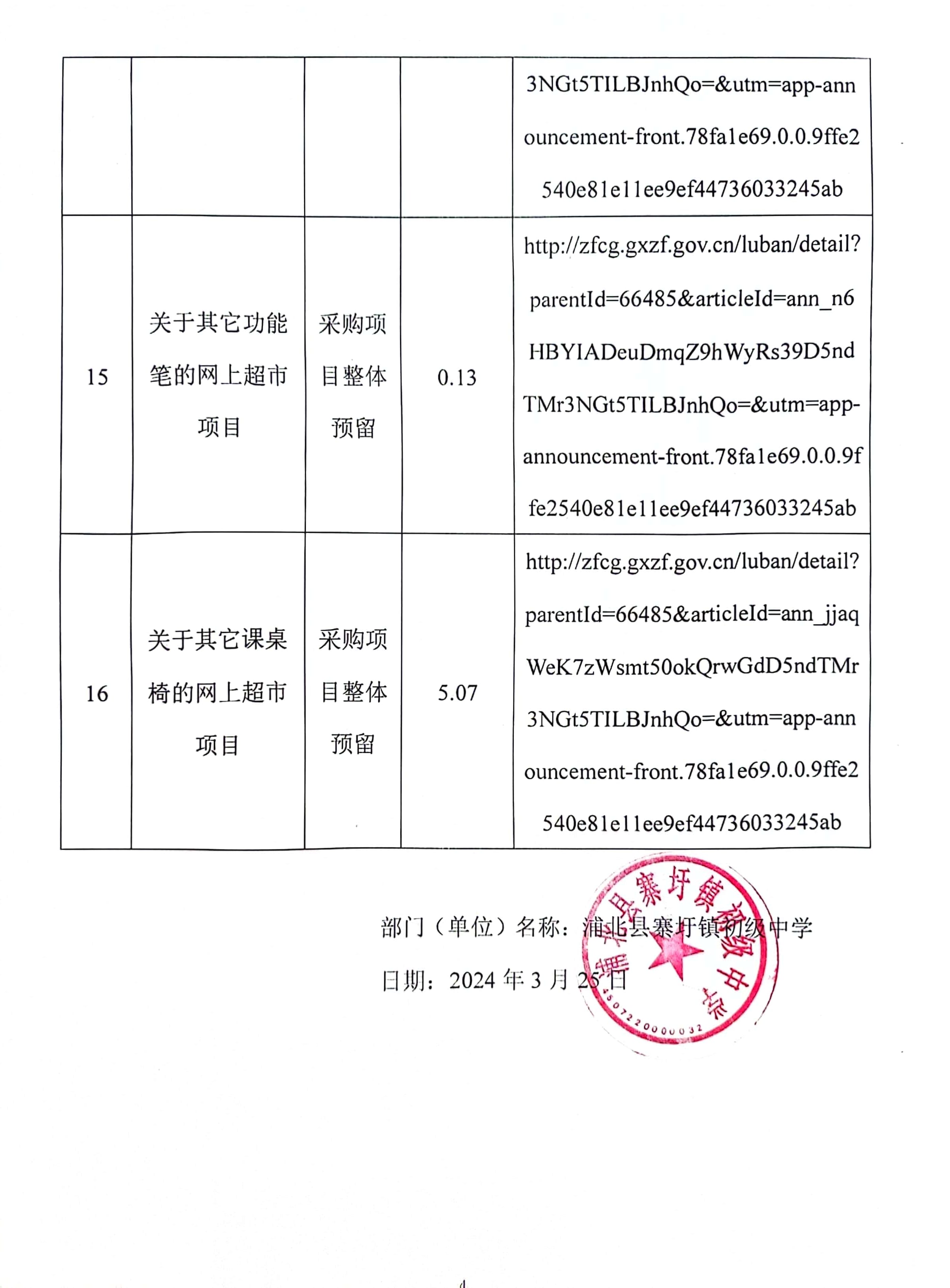 | 1 | 浦北县寨圩镇初级中学网上超市项目 | 采购项目整体预留(预留中小企业的比例:100.00%) | 2.19 | - |