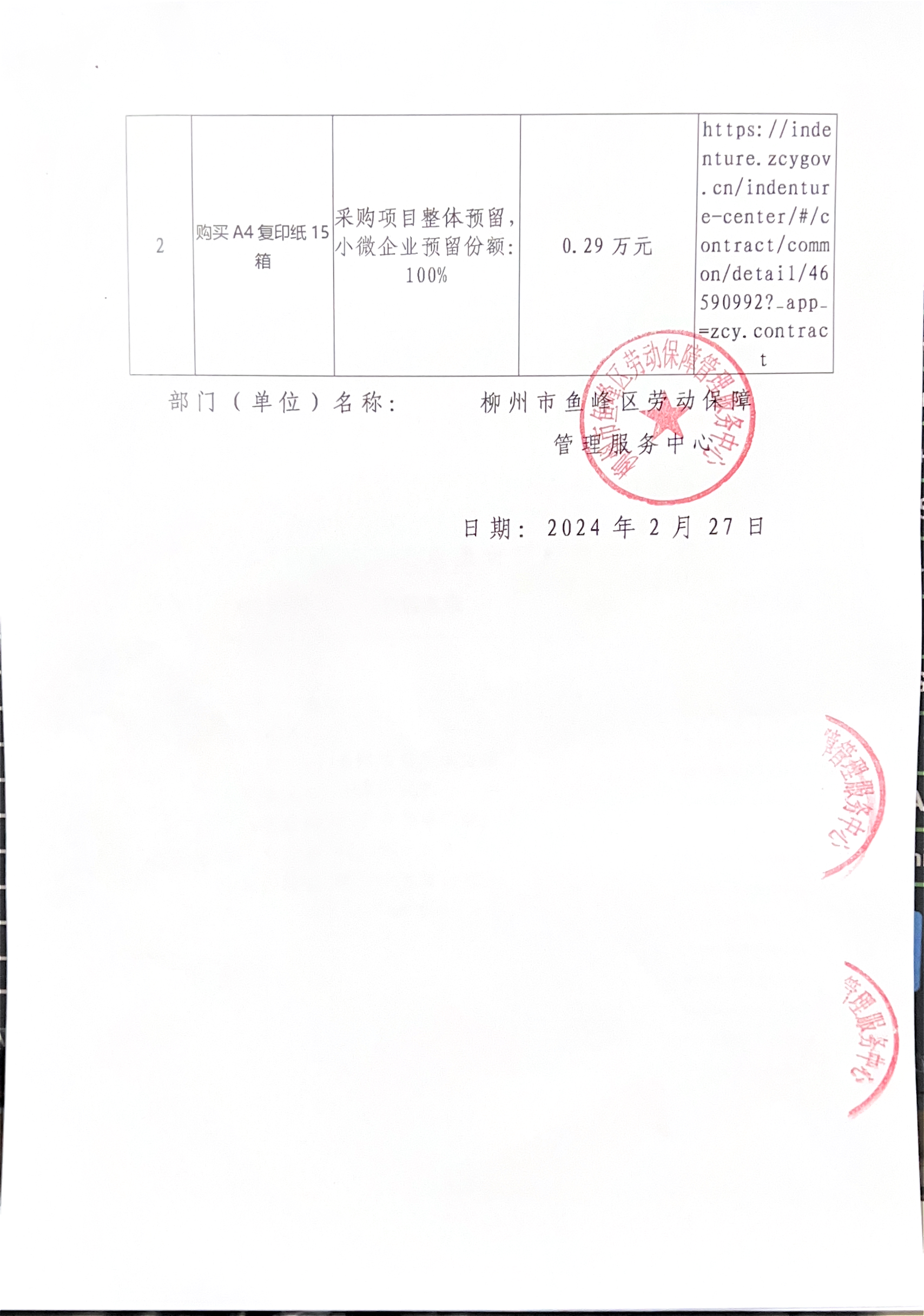 | 2 | 关于打印/复印纸的网上超市合同 | 采购项目整体预留(预留中小企业的比例:100.00%) | 0.29 | 合同名称:关于打印/复印纸的网上超市合同合同编号:11N98622025E2023201 |