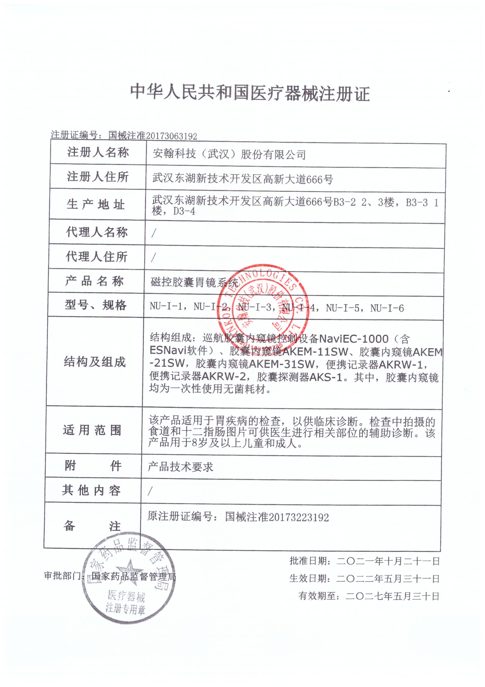 事实依据:成交产品安翰NU-I-2的医疗器械注册证有包含肠道的适用范围,可通过拍照等方式对肠道进行诊断,详见附件:安翰NU-I-2的医疗器械注册证。
